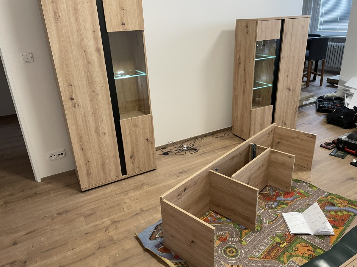 Postarali jsme se o kompletní sestavení skříně i celé sestavy obývací stěny, včetně přesného usazení jednotlivých dílů. Montáž nábytku SCONTO proběhla pečlivě a bez zbytečných komplikací, tak aby vše správně sedělo a fungovalo.