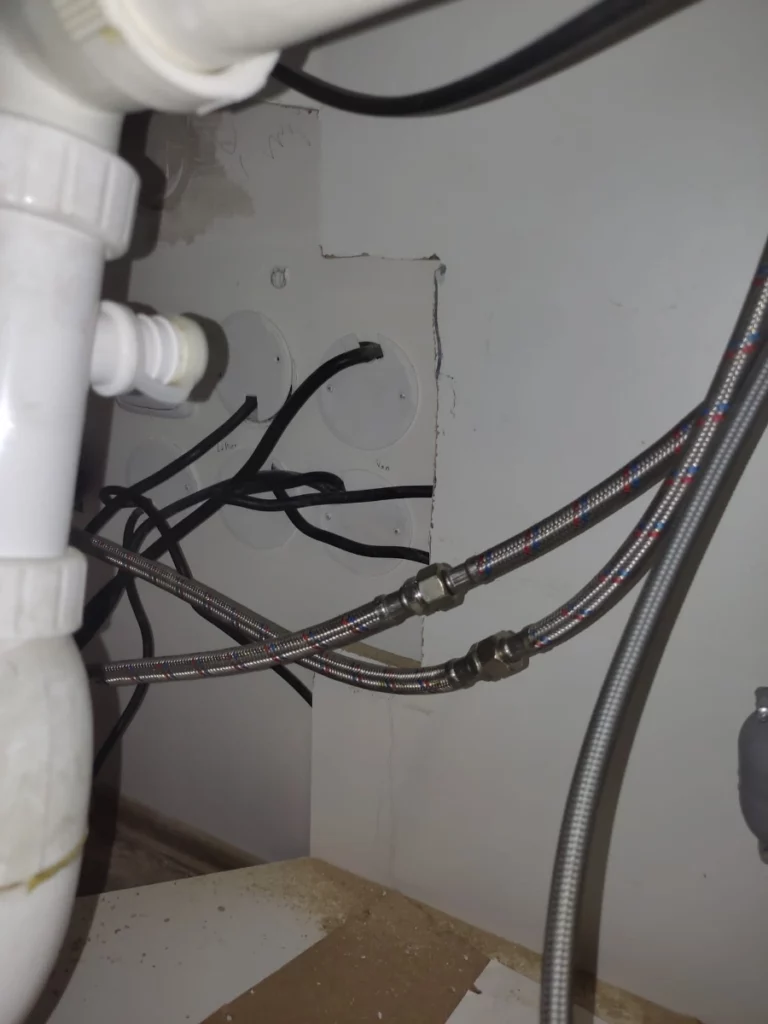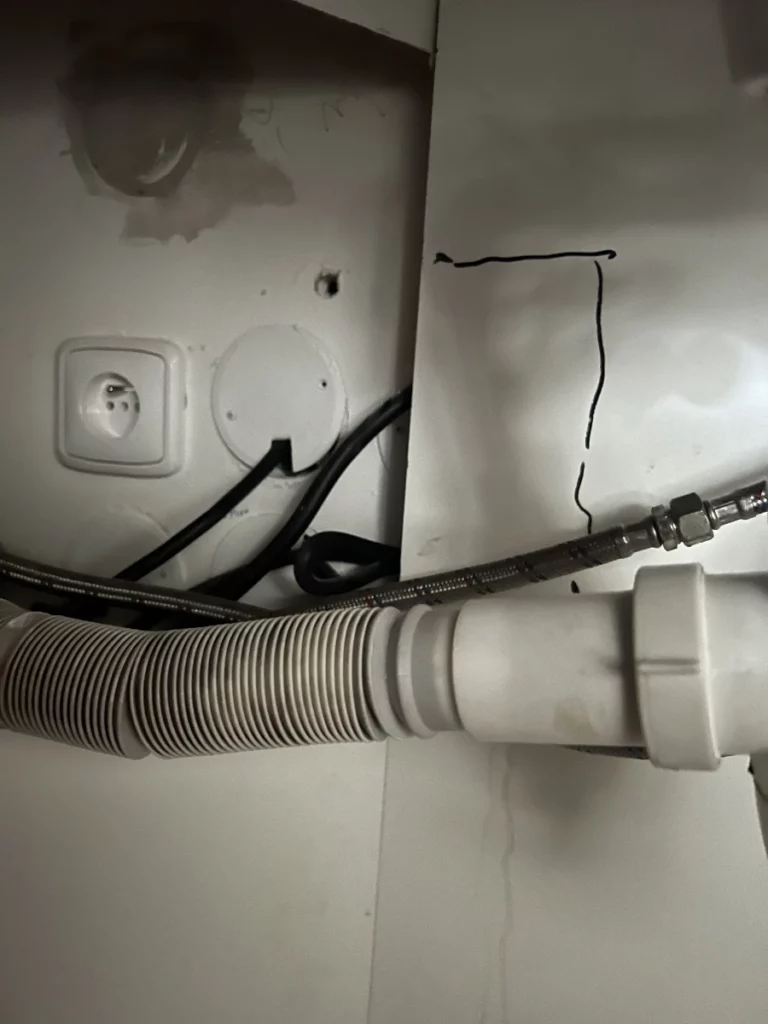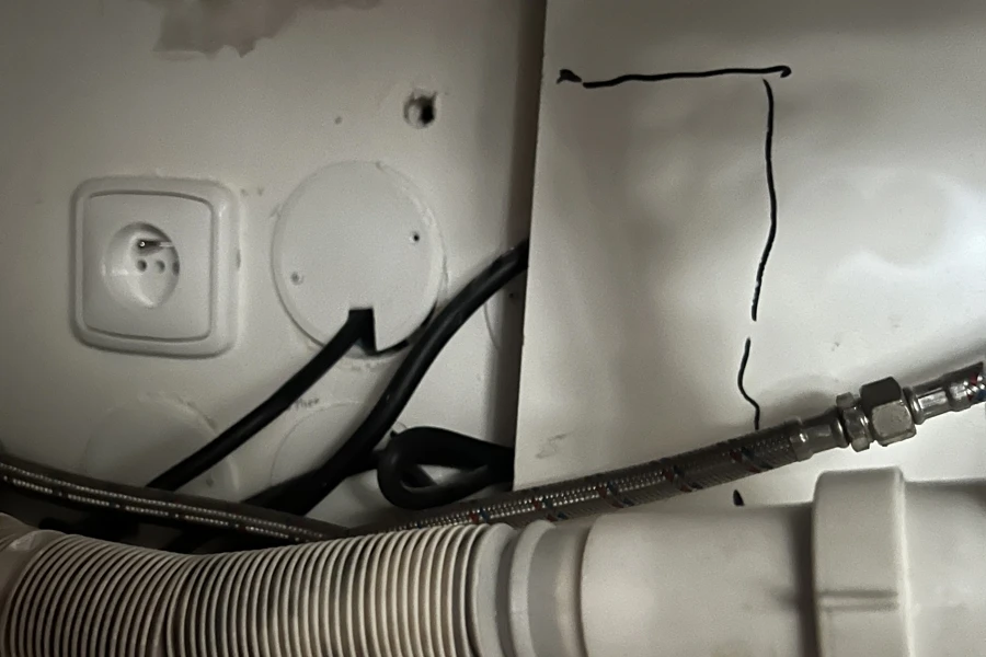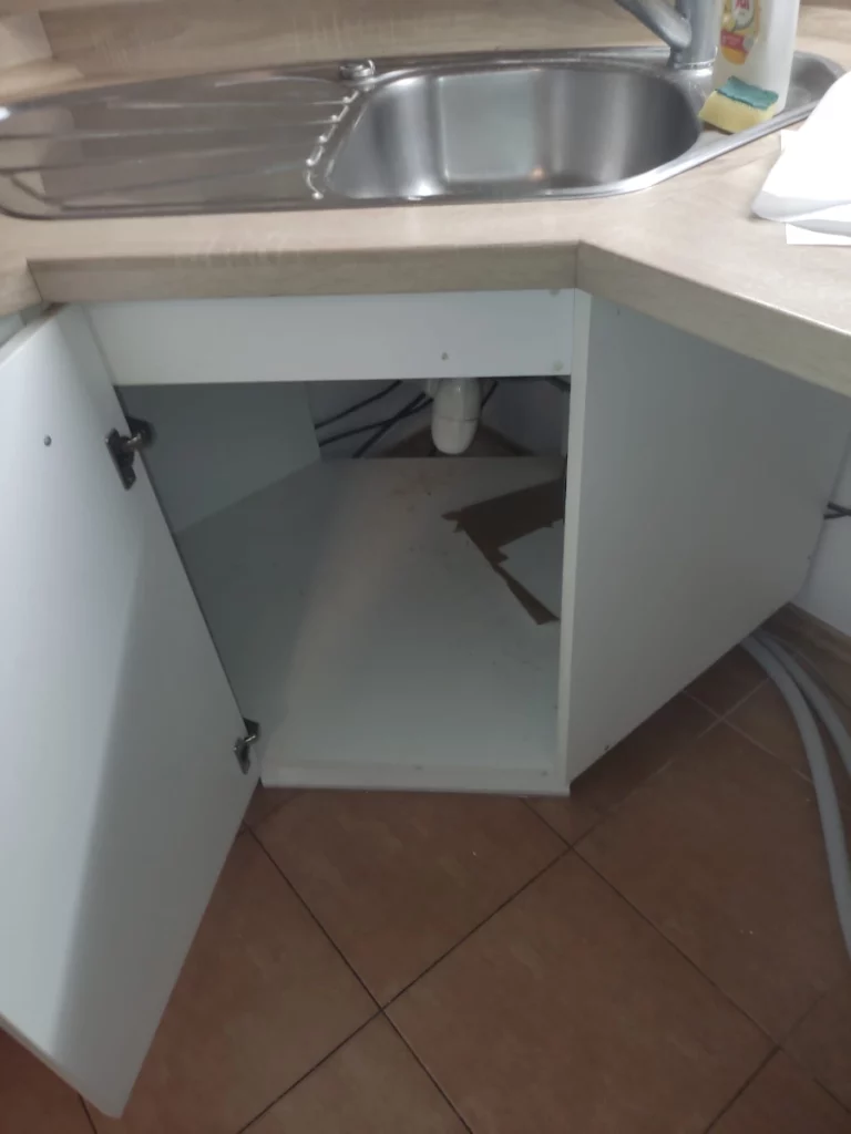 Pod kuchyňským dřezem nebyl přístup k rozvodným krabicím, kam bylo nutné zasáhnout při opravě elektroinstalace. Bylo proto potřeba přesně oříznout zadní stěnu skříňky, aby mohl elektrikář bezpečně pracovat. Díky úpravě se k elektroinstalaci dostal bez nutnosti demontáže celé kuchyňské linky. Typická ukázka rychlé a efektivní pomoci hodinového manžela.